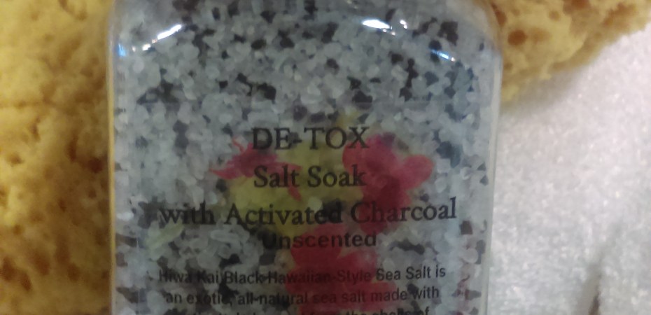 purify your skin. Detox has charcoal salt mined from Hawaii. I also made a seaweed soak using kelp which is also a detox soak. What do I like about these two new salt soaks? They suck out the toxins from your skin! They cleanse and detox leaving your skin refuled with all the yucky toxins lured out of your skin by either Seaweed properties or Charcoal Salt properties while you relax in a hot soaking tub.