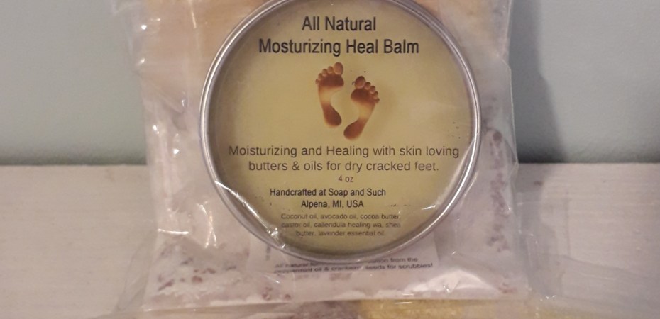 (3) Follow up with our healing balm to moisturize dry, cracked heals – handcrafted with skin loving oils, cocoa butter & shea butter with healing calendulla wax.